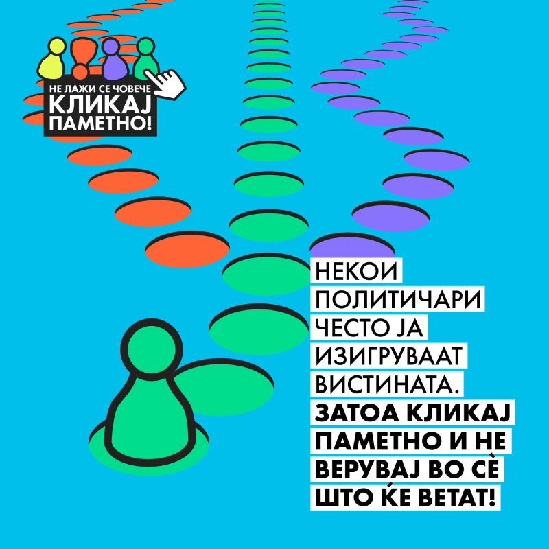 Затоа треба внимателно да ги мериме зборовите на политичарите и на другите јавни личности, да ги споредуваме со нивните дела и со нивната работа. Поради ова кликајте паметно, не верувајте во сѐ што ќе слушнете само затоа што тоа го има насекаде во медиумите, споредувајте ги вестите и информациите од повеќе извори, проверете ги фактите дали се точни или не, не верувајте им на медиумите за кои знаете дека претходно ги извртувале фактите и вистината. На политичарите, пак, порачајте им дека довербата треба да ја заслужат со чесна работа и решавање на проблемите, а не со купување или дарување на вашата доверба на слепо или незаслужено.